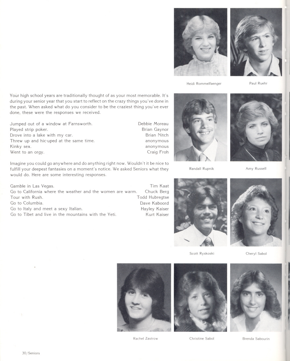 1983 Sheboygan South High School, Page 30: Heidi Rommelfaenger, Paul Ruehr, Randall Rupnik, Amy Russell, Scott Ryskoski, Cheryl Sabol, Rachel Zastrow, Christine Sabol, Brenda Sabourin.