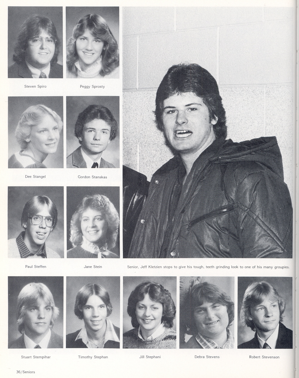 1983 Sheboygan South High School, Page 36: Steven Spiro, Peggy Sprosty, Dee Stangel, Gordon Stanskas, Paul Steffen, Jane Stein, Stuart Stempihar, Timothy Stephan, Jill Stephani, Debra Stevens, Robert Stevenson.