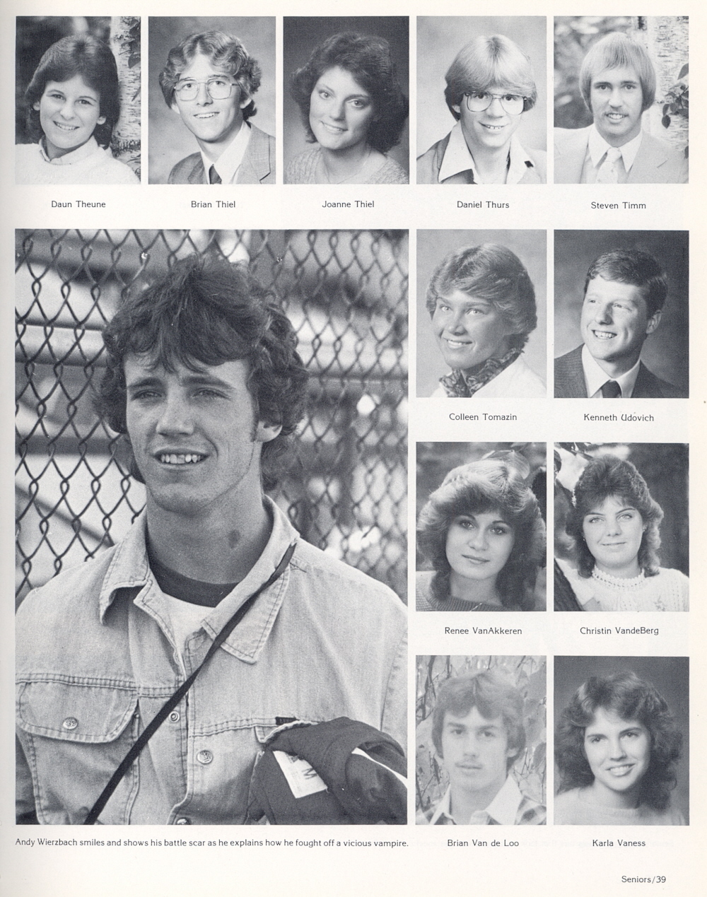 1983 Sheboygan South High School, Page 39: Daun Theune, Brian Thiel, Joanne Thiel, Daniel Thurs, Steven Timm, Colleen Tomazin, Kenneth Udovich, Renee VanAkkeren, Christin VandeBerg, Brian Van do Loo, Karla Vaness.