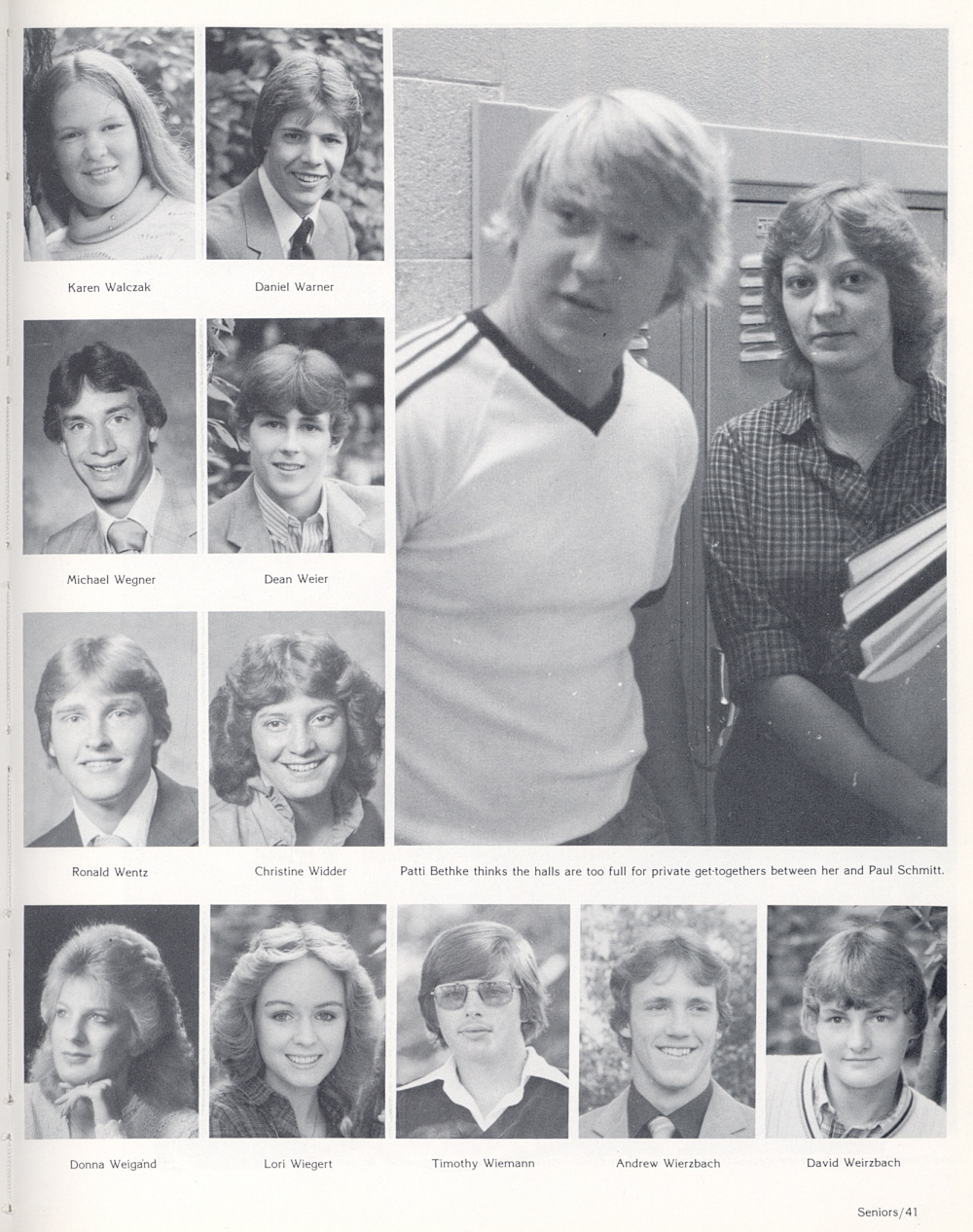 1983 Sheboygan South High School, Page 41: Karen Walczak, Daniel Warner, Michael Wegner, Dean Weier, Ronald Wentz, Christine Widder, Donna Weigand, Lori Weigert, Timothy Wiemann, Andrew Wierzbach, David Wierzbach.