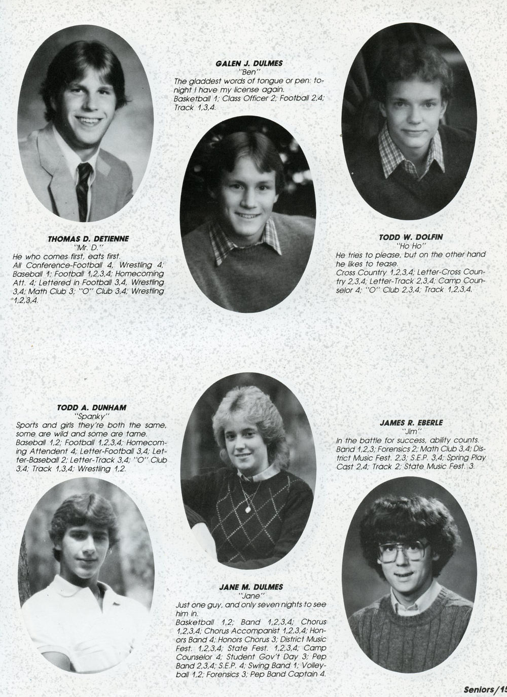 1984 Oostburg High School, Page 15: Thomas D. Detienne, Todd W. Dolfin, Galen J. Dulmes, Jane M. Dulmes, Todd A. Dunham, James R. Everle.