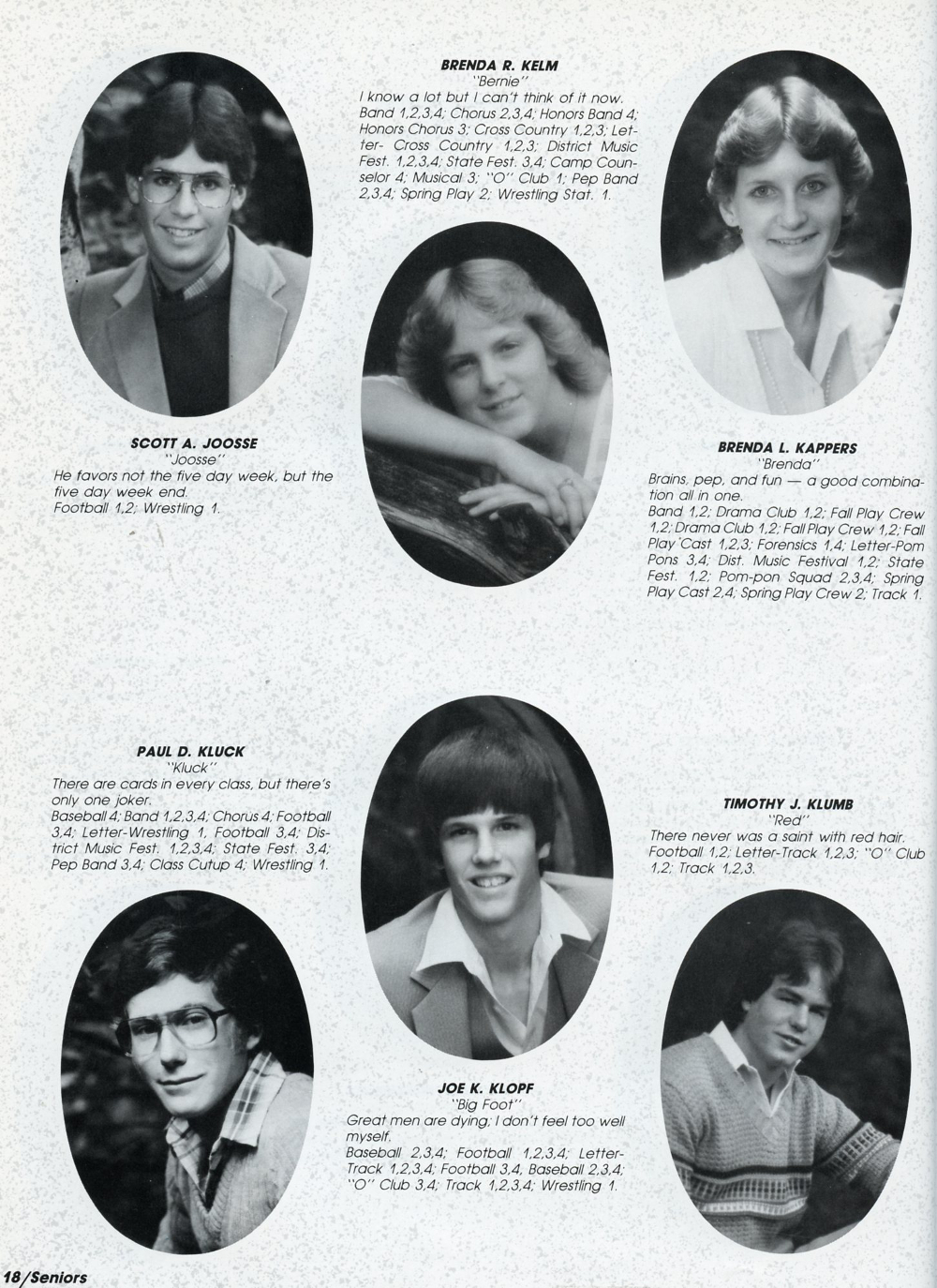 1984 Oostburg High School, Page 18: Scott A. Joosse, Brenda L. Kappers, Brenda R. Kelm, Joe K. Klopf, Paul D. Kluck, Timothy J. Klumb.