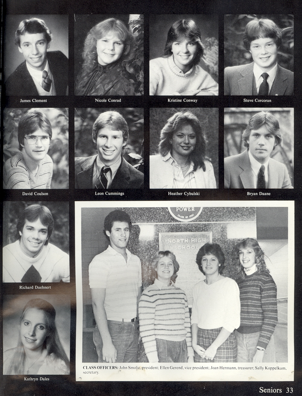 1984 Sheboygan North High School, Page 33: James Clement, Nicole Conrad, Kristine Conway, Steve Corcoran, David Coulson, Leon Cummings, Heather Cybulski, Bryan Daane, Richard Daehnert, Kathryn Dales.