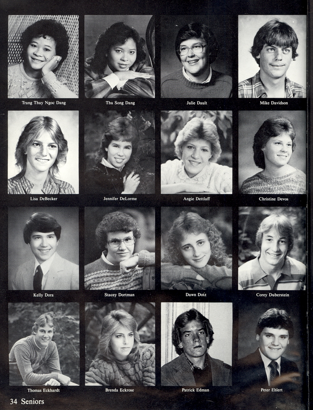 1984 Sheboygan North High School, Page 34: Trang Thuy Ngoc Dang, Thu Song Dang, Julie Dault, Mike Davidson, Lisa DeBecker, Jennifer DeLorme, Angie Dettlaff, Christine Devos, Kelly Dora, Stacey Dortman, Dawn Dotz, Corey Duberstein, Thomas Eckhardt, Brenda Eckrose, Patrick Edman, Peter Ehlert.