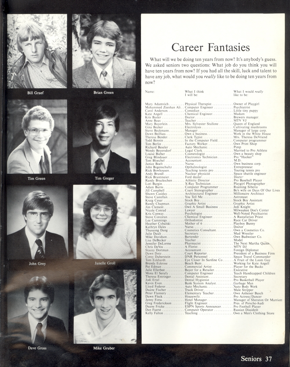 1984 Sheboygan North High School, Page 37: Bill Graef, Brian Green, Tim Green, Tim Greger, John Grey, Janelle Groll, Dave Gross, Mike Gruber.