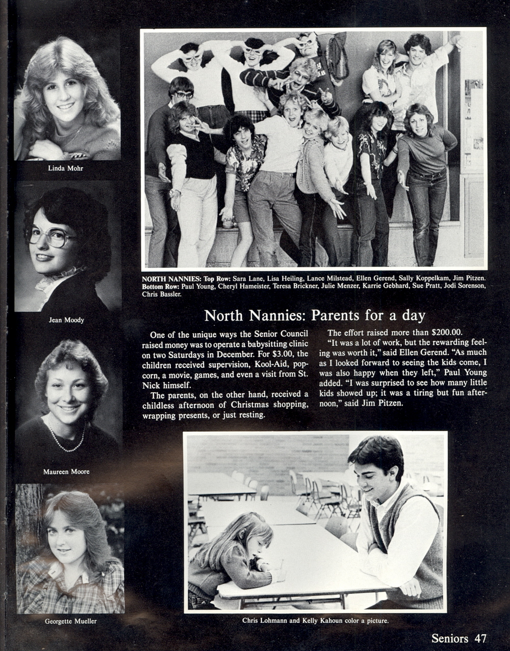1984 Sheboygan North High School, Page 47: Linda Mohr, Jean Moody, Maureen Moore, Georgette Mueller.