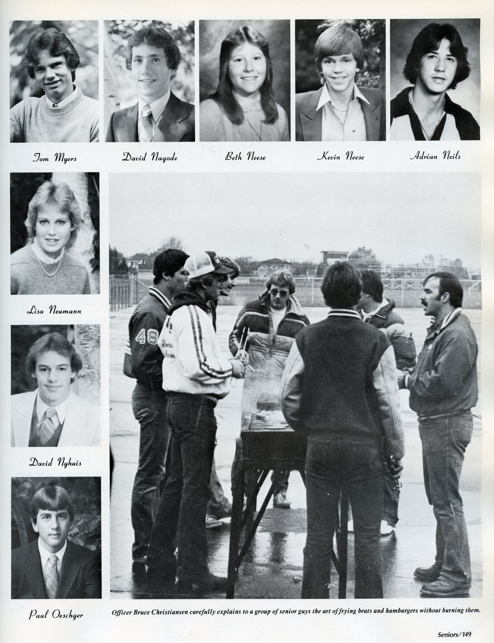 1984 Sheboygan South High School, Page 149: Tom Myers, David Nagode, Beth Neese, Kevin Neese, Adrian Neils, Lisa Neumann, David Nyhuis, Paul Oeschger.