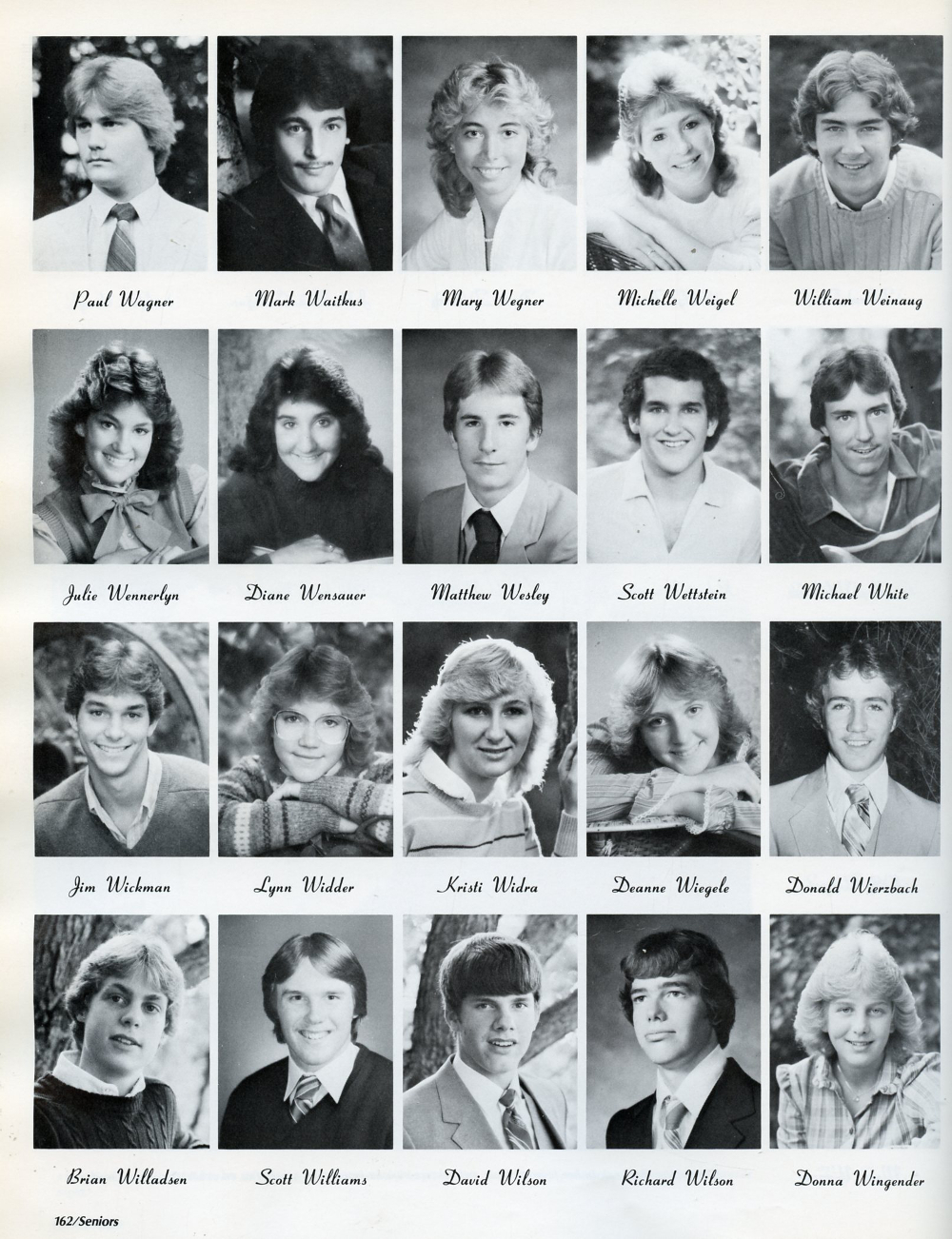 Matthew Wesley, Scott Wettstein, Michael White, Jim Wickman, Lynn Widder, Kristi Widra, Deanne Wiegele, Donald Wierzbach, Brian Willadsen, Scott Williams, David Wilson, Richard Wilson,