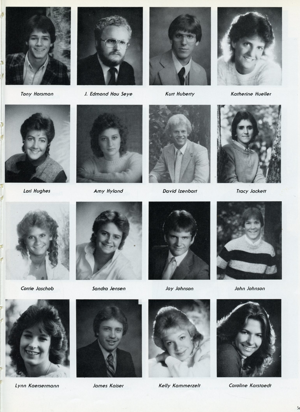 Carrie Jaschob, Sandra Jensen, Jay Johnson, John Johnson, Lynn Kaersermann, James Kaiser, Kelly Kammerzelt, Caroline Karstaedt.