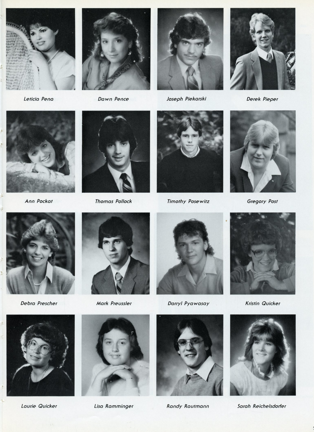 Debra Prescher, Mark Preussler, Darryl Pyawasay, Kristin Quicker, Laurie Quicker, Lisa Ramminger, Randy Rautmann, Sarah Reichelsdorfer.