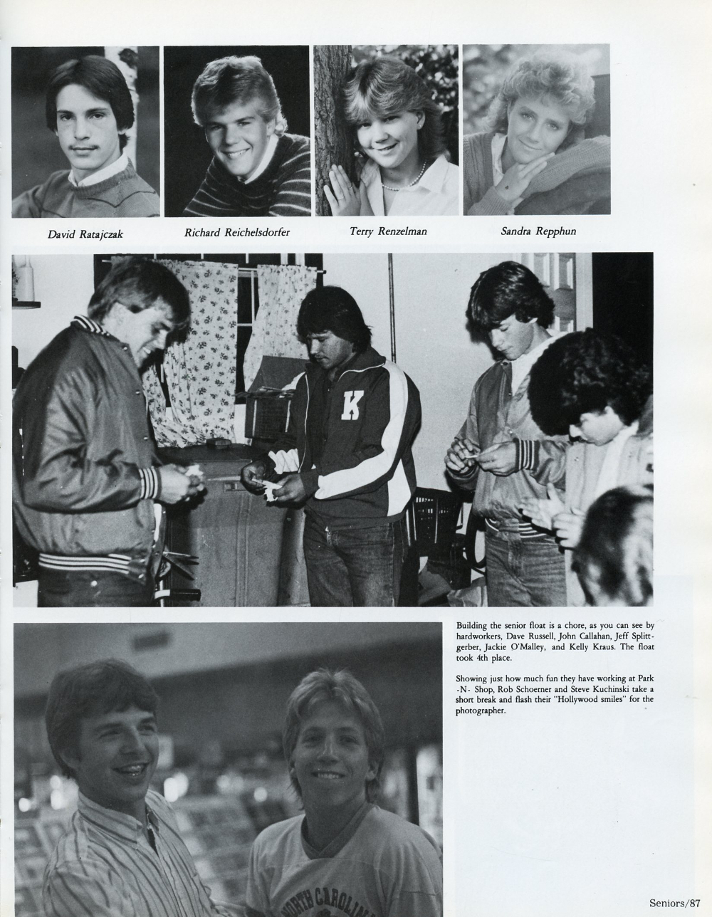 1986 Sheboygan South High School, Page 87: David Ratajczak, Richard Reichelsdorfer, Terry Renzelman, Sandra Repphun.