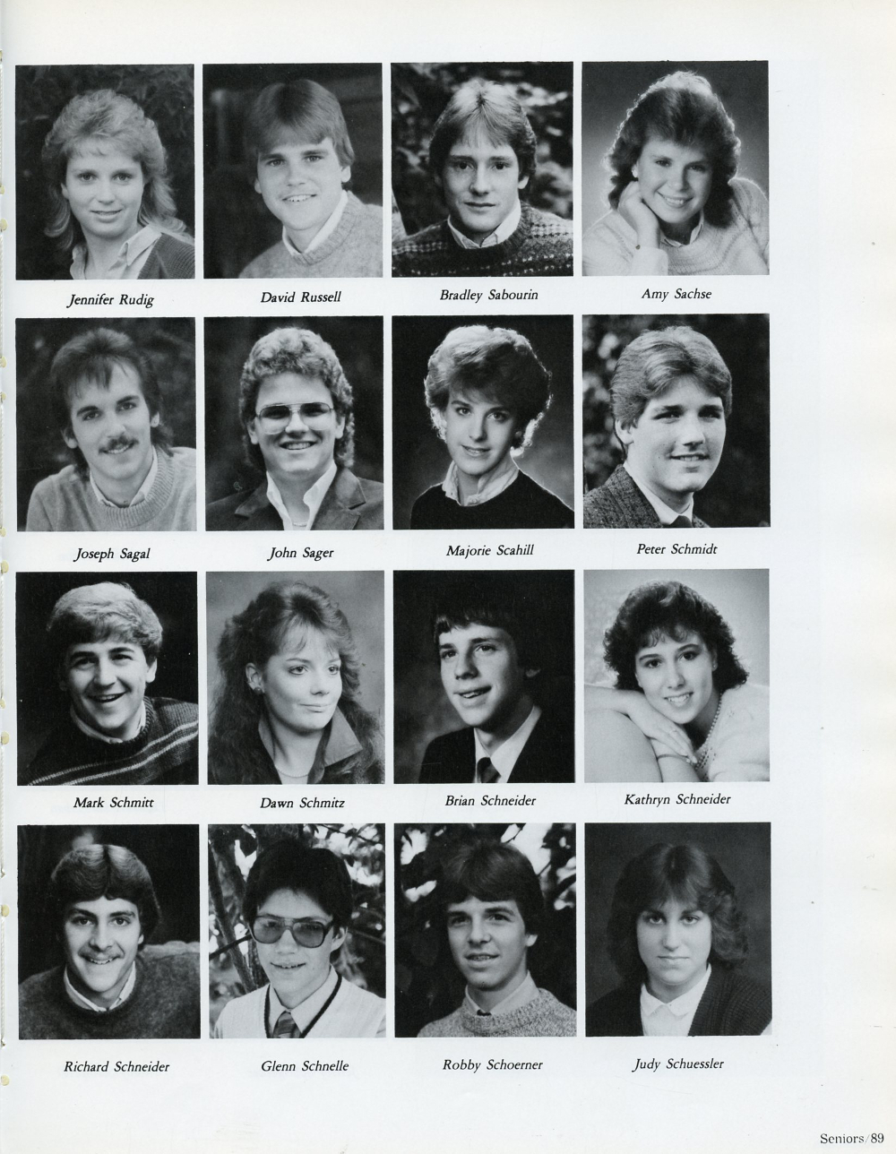 Mark Schmitt, Dawn Schmitz, Brian Schneider, Kathryn Schneider, Richard Schneider, Glenn Schnelle, Robby Schoerner, Judy Schuessler.