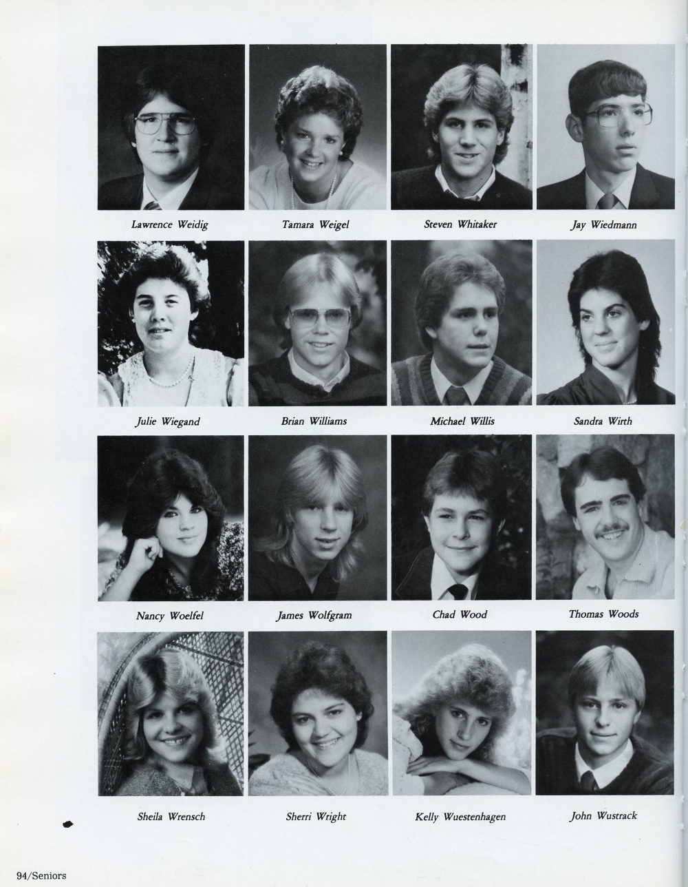 Nancy Woelfel, James Wolfgram, Chad Wood, Thomas Woods, Sheila Wrensch, Sherri Wright, Kelly Wuestenhagen, John Wustrack.