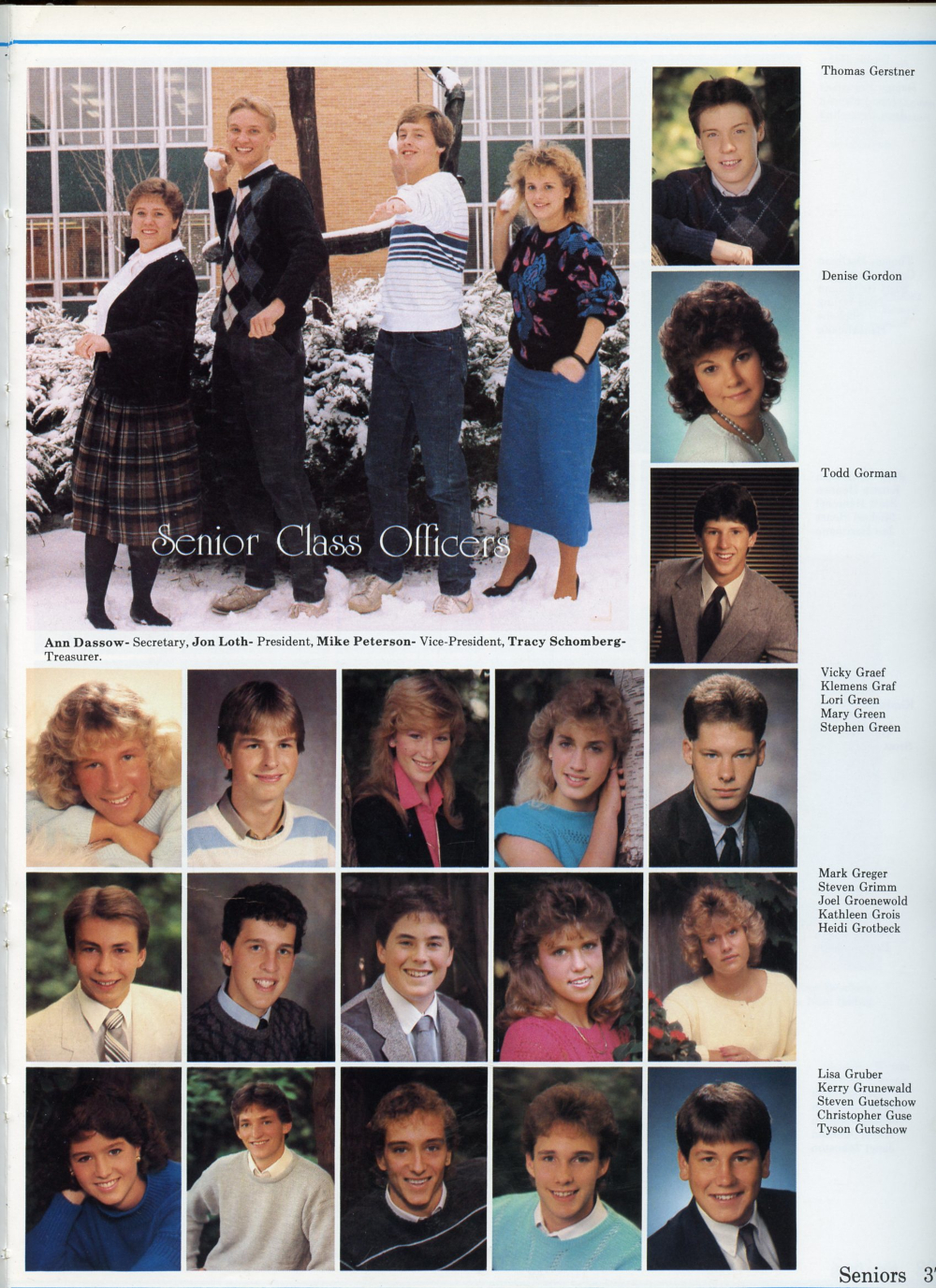 Steven Grimm, Joel Groenewold, Kathleen Grois, Heidi Grotbeck, Lisa Gruber, Kerry Grunewald, Steven Guetschow, Christopher Guse, Tyson Gutschow.