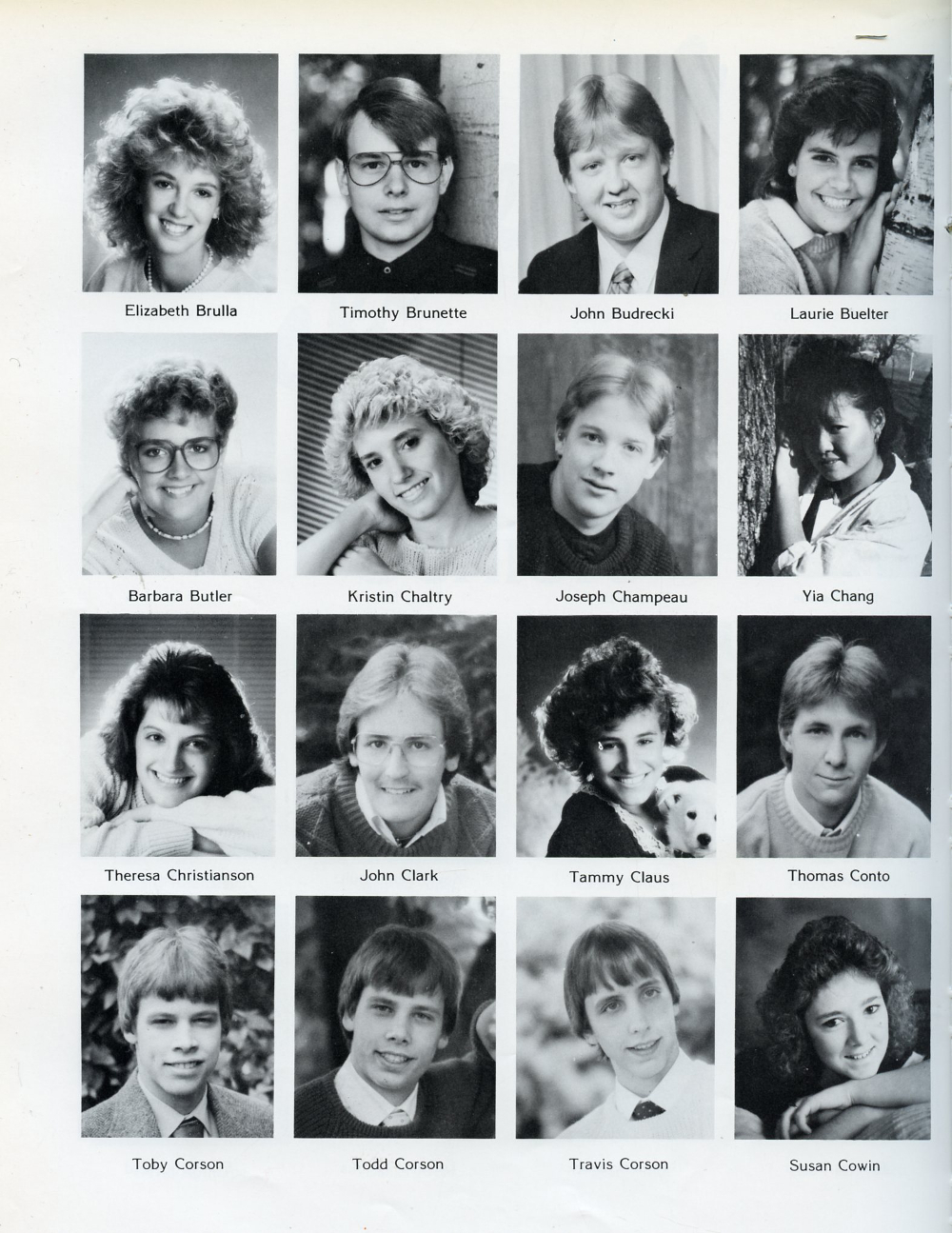 Yia Chang, Theresa Christianson, John Clark, Tammy Claus, Thomas Conto, Toby Corson, Todd Corson, Travis Corson, Susan Cowin.