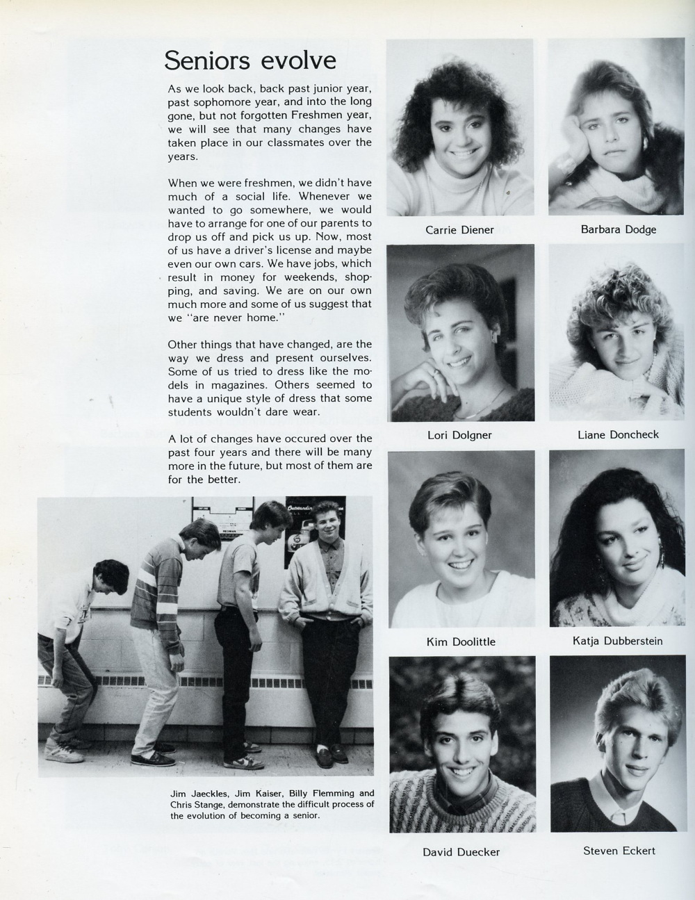 1988 Sheboygan South High School, Page 126: Carrie Diener, Barbara Dodge, Lori Dolgner, Liane Doncheck, Kim Doolittle, Katja Dubberstein, David Duecker, Steven Eckert.