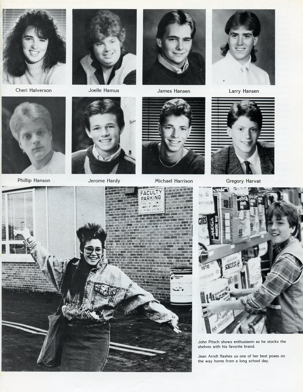1988 Sheboygan South High School, Page 129: Cheri Halverson, Joelle Hamus, James Hansen, Larry Hansen, Phillip Hanson, Jerome Hardy, Michael Harrison, Gregory Harvat.