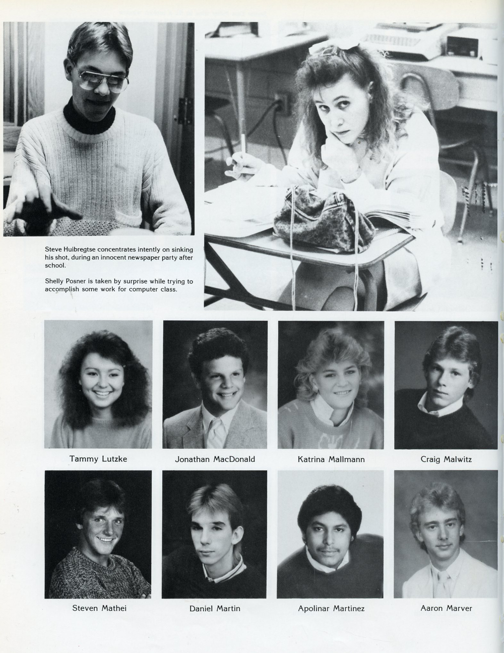 1988 Sheboygan South High School, Page 136: Tammy Lutzke, Jonathan MacDonald, Katrina Mallmann, Craig Malwitz, Steven Mathei, Daniel Martin, Apolinar Martinez, Aaron Marver.