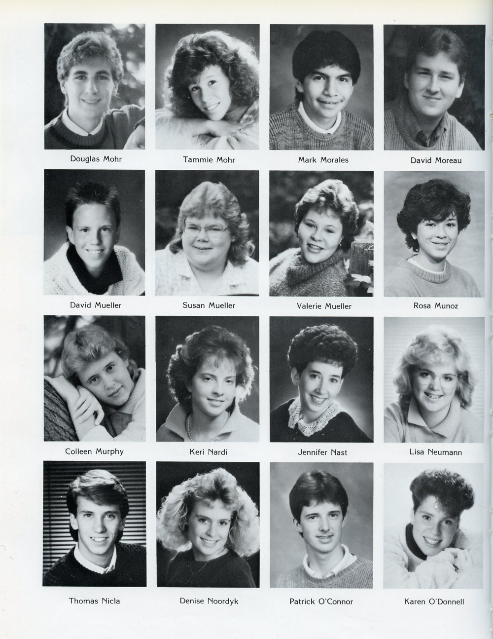 Douglas Mohr, Tammie Mohr, Mark Morales, David Moreau, David Mueller, Susan Mueller, Valerie Mueller, Rosa Munoz,