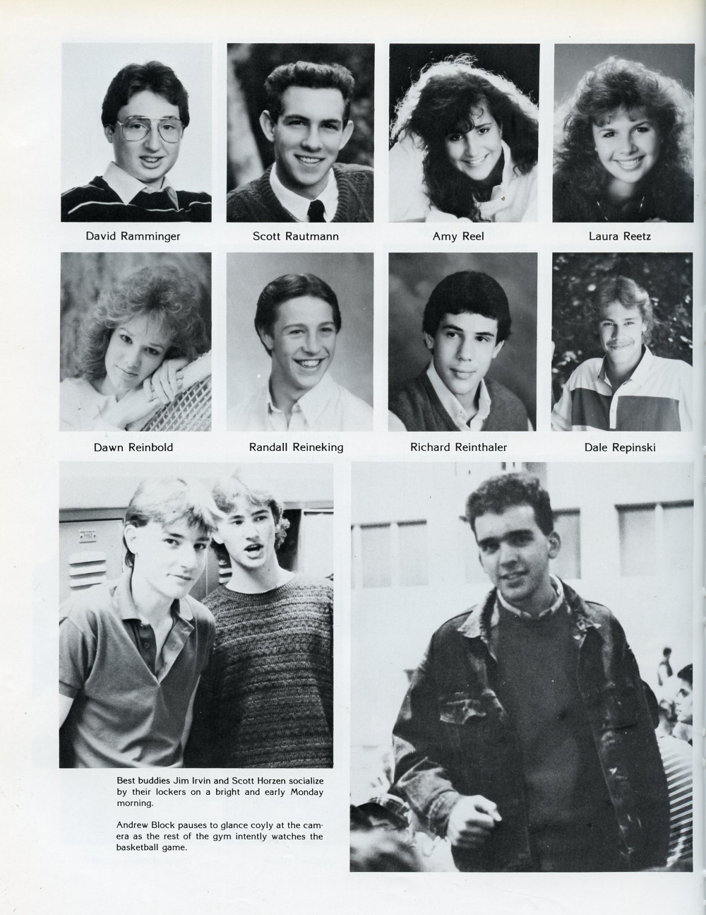 1988 Sheboygan South High School, Page 142: David Ramminger, Scott Rautmann, Amy Reel, Laura Reetz, Dawn Reinbold, Randall Reineking, Richard Reinthaler, Dale Repinski.