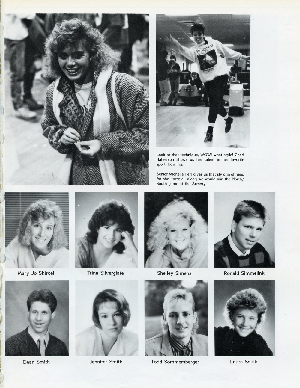1988 Sheboygan South High School, Page 145: Mary Jo Shircel, Trina Silverglate, Shelley Simenz, Ronald Simmelink, Dean Smith, Jennifer Smith, Todd Sommersberger, Laura Souik.