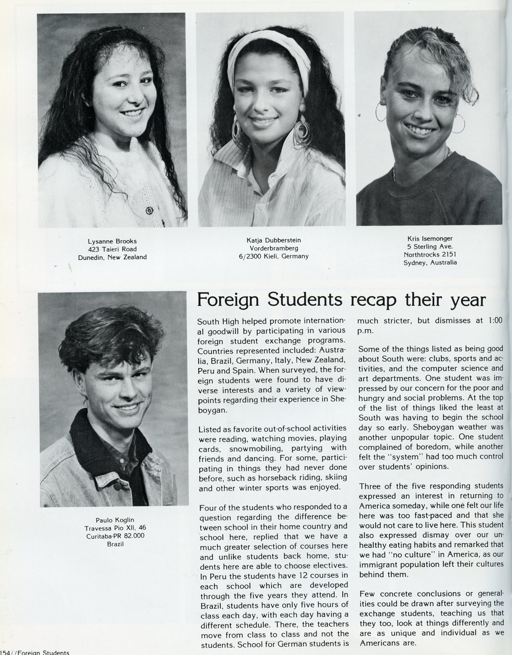 1988 Sheboygan South High School, Page 154: Lysanne Brooks, Katja Dubberstein, Kris Isemonger, Paulo Koglin.