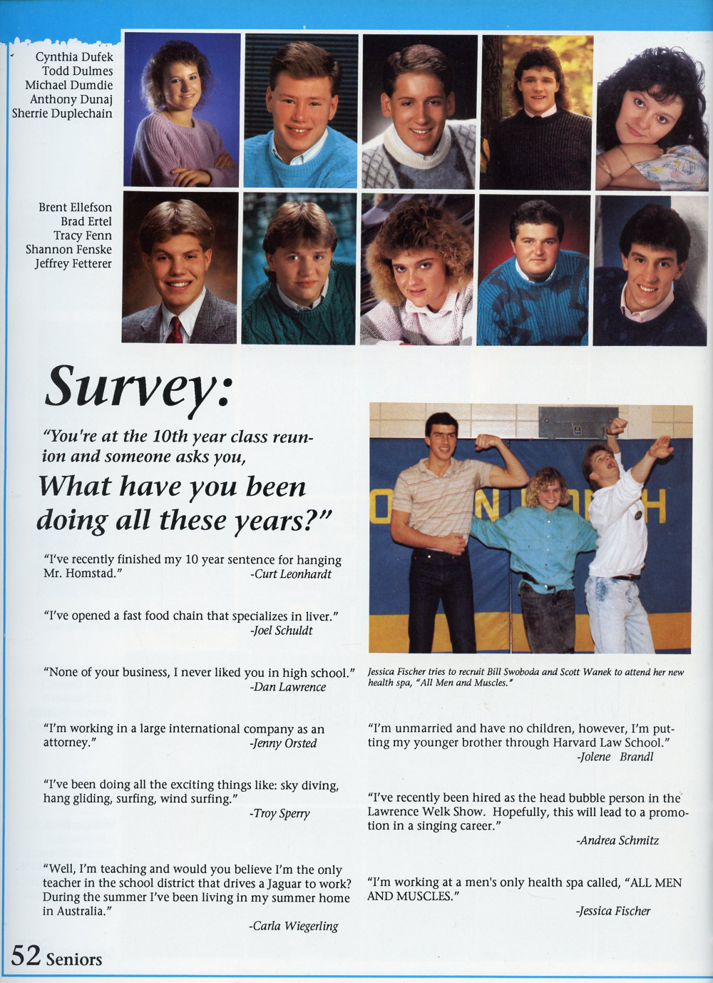 1989 Sheboygan North High School, Page 52: Cynthia Dufek, Todd Dulmes, Michael Dumdie, Anthony Dunaj, Sherrie Duplechain, Brent Ellefson, Brad Ertel, Tracy Fenn, Shannon Fenske, Jeffrey Fetterer.