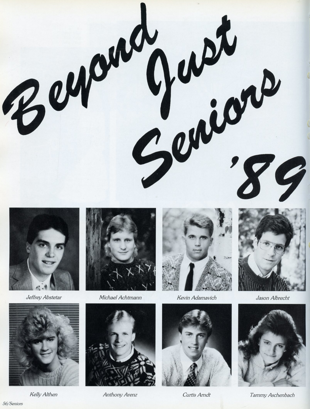 1989 Sheboygan South High School Yearbook Page 56: Jeffrey Abstetar, Michael Achtmann, Kevin Adamavich, Jason Albrecht, Kelly Althen, Anthony Arenz, Curtis Arndt, Tammy Aschenbach.