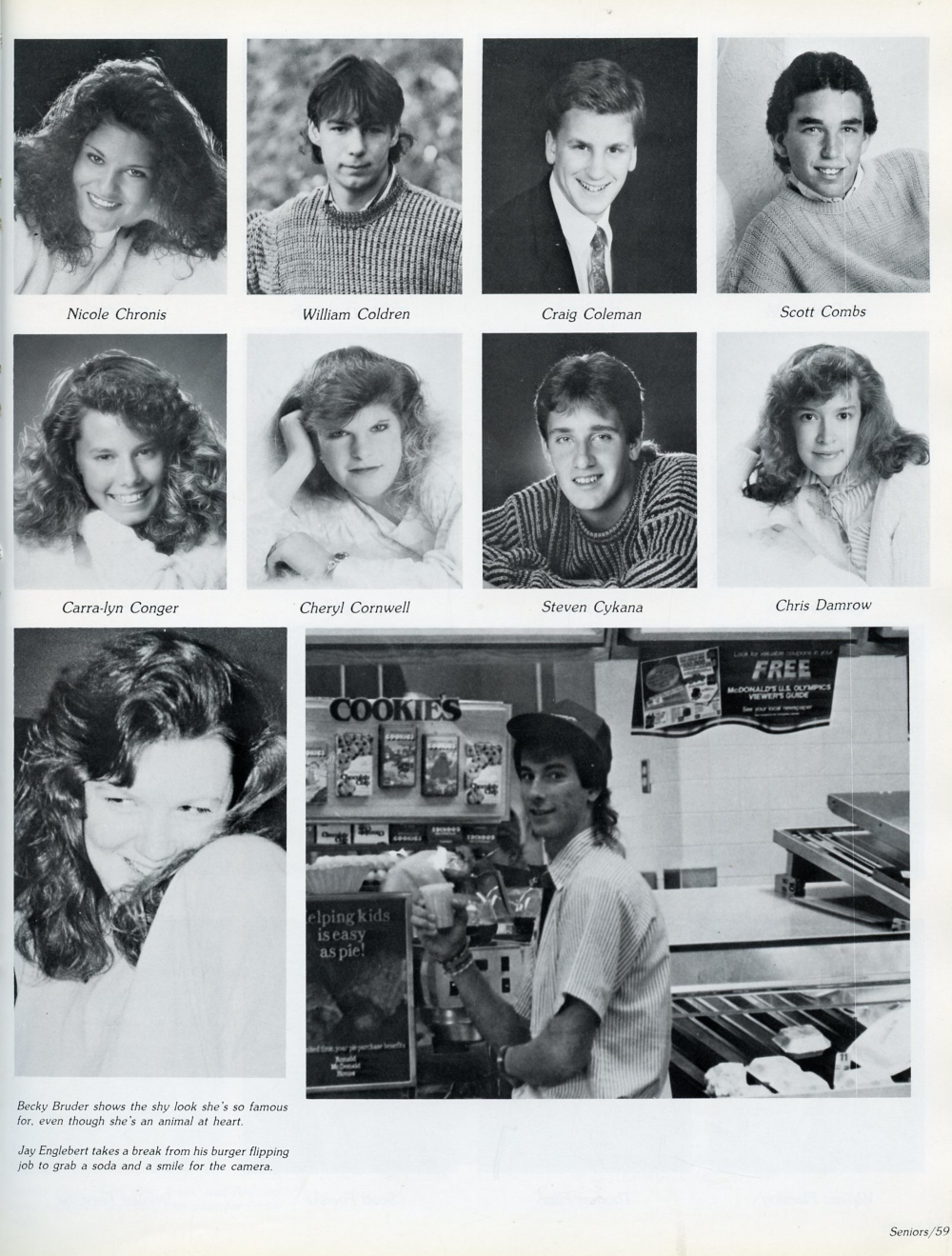 1989 Sheboygan South High School Yearbook Page 59: Nicole Chronis, William Coldren, Craig Coleman, Scott Combs, Carra-lyn Conger, Cheryl Cornwell, Steven Cykana, Chris Damrow.