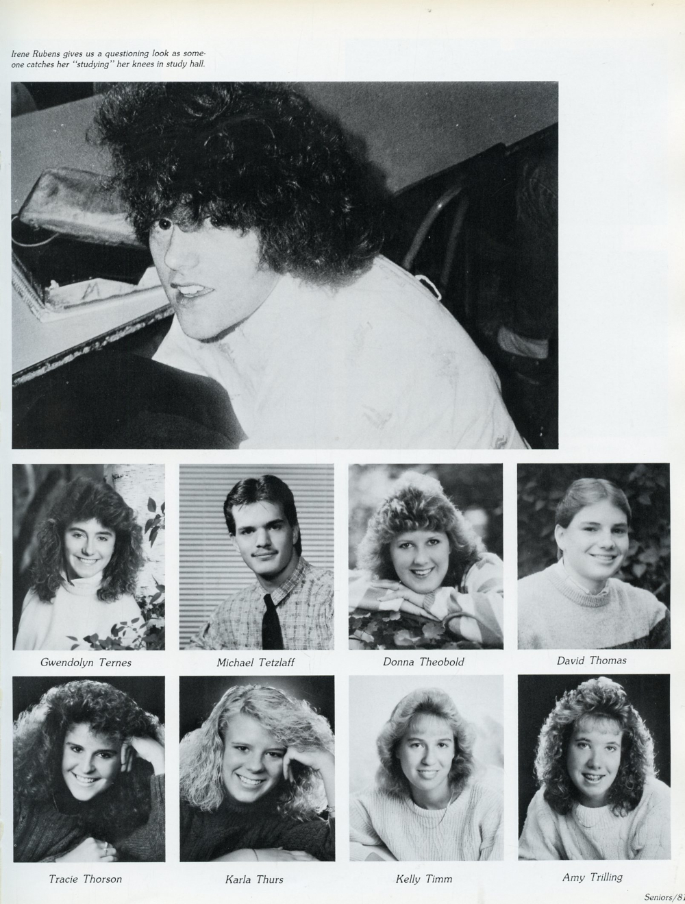 1989 Sheboygan South High School Yearbook Page 81: Gwendolyn Ternes, Michael Tetzlaff, Donna Theobald, David Thomas, Tracie Thorson, Karla Thurs, Kelly Timm, Amy Trilling.