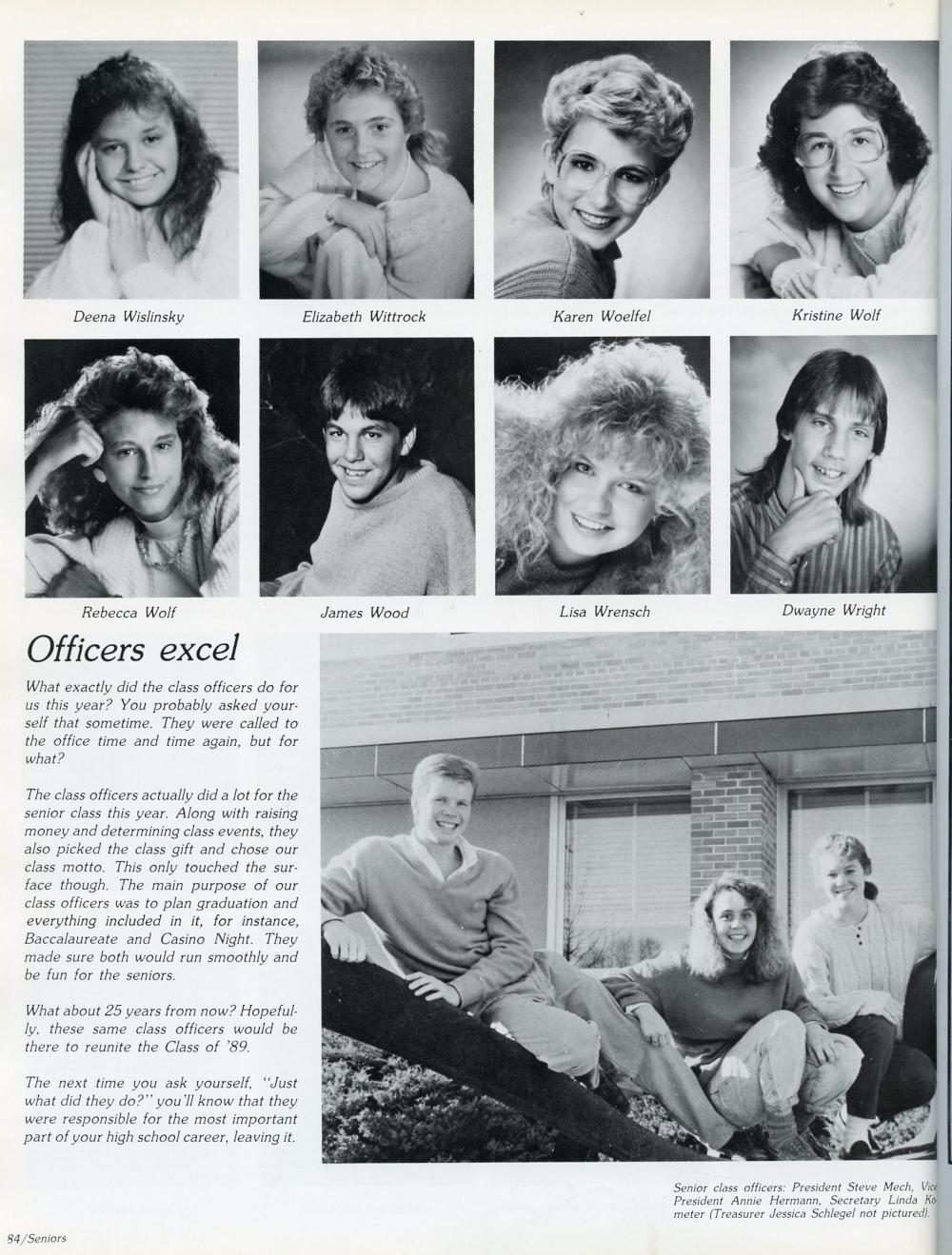 1989 Sheboygan South High School Yearbook Page 84: Deena Wislinsky, Elizabeth Wittrock, Karen Woelfel, Kristine Wolf, Rebecca Wolf, James Wood, Lisa Wrensch, Dwayne Wright.
