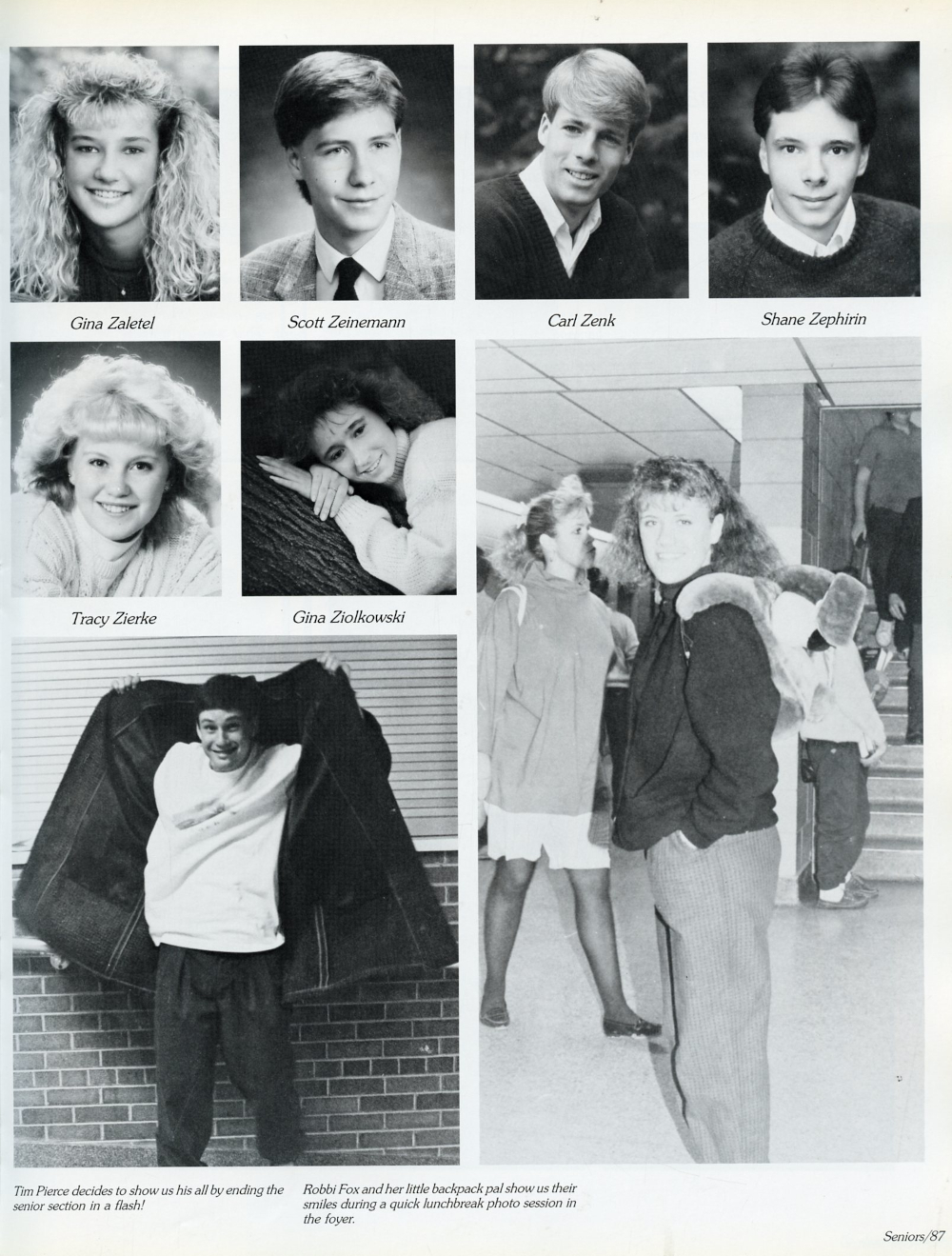 1989 Sheboygan South High School Yearbook Page 87: Gina Zaletel, Scott Zeinemann, Carl Zenk, Shane Zephirin, Tracy Zierke, Gina Ziolkowski.