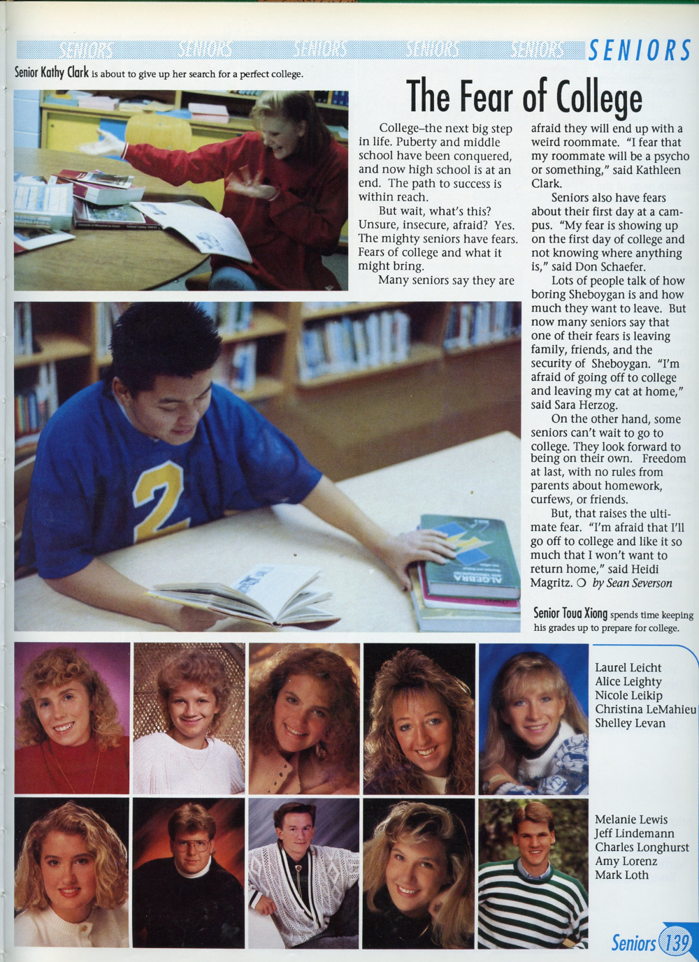 1990 Sheboygan North High School Yearbook Page 139: Laurel Leicht, Alice Leighty, Nicole Leikip, Christina LeMahieu, Shelley Levan, Melanie Lewis, Jeff Lindemann, Charles Longhurst, Amy Lorenz, Mark Loth.