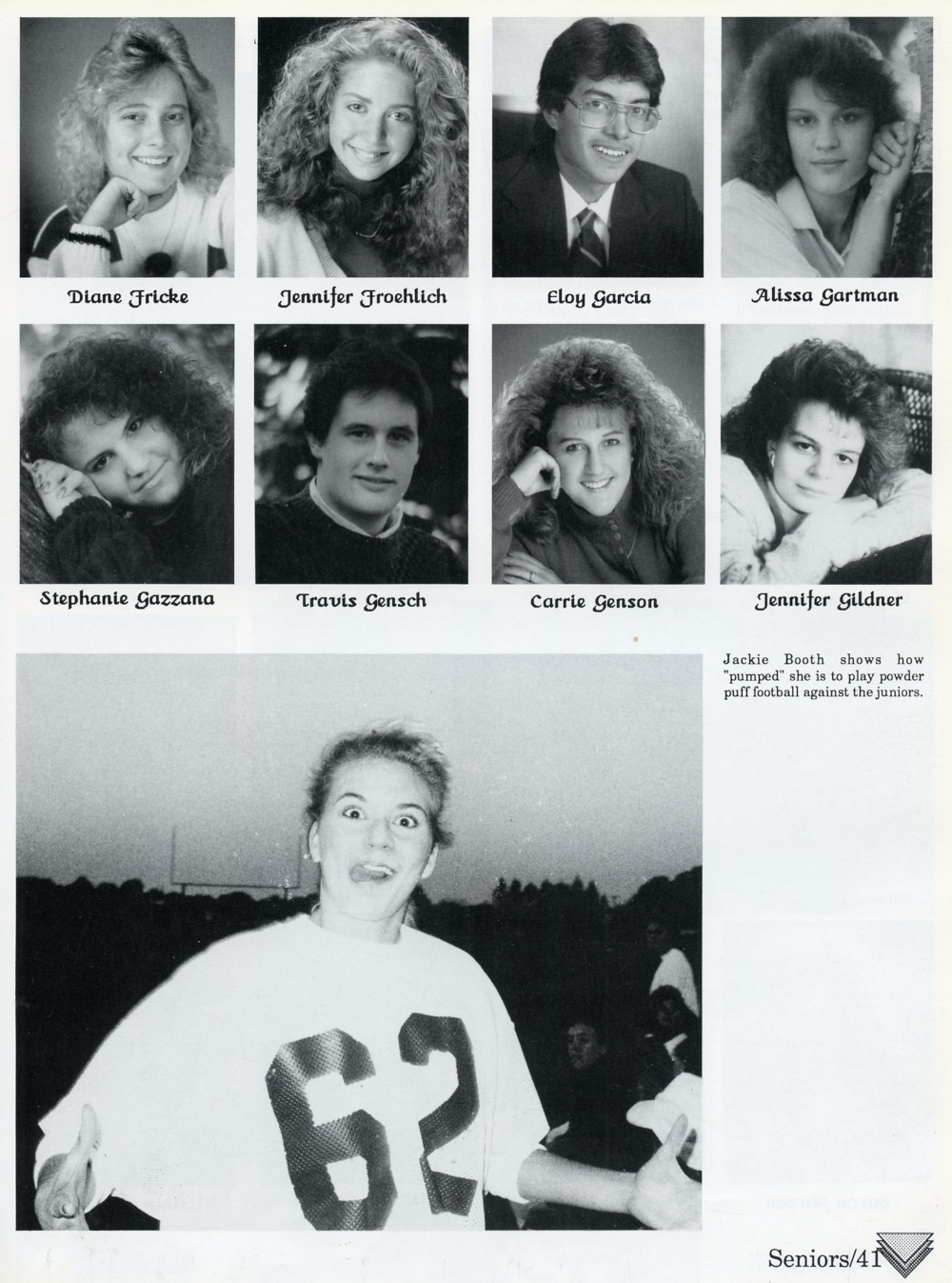 1990 Sheboygan South High School Yearbook Page 41: Diane Fricke, Jennifer Froehlich, Eloy Garcia, Alissa Gartman, Stephanie Gazzana, Travis Gensch, Carrie Genson, Jennifer Gildner.
