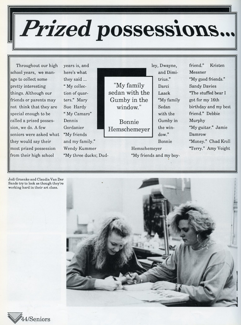 1990 Sheboygan South High School Yearbook Page 44: Prized Possessions.