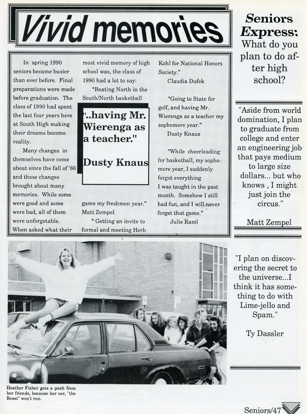 1990 Sheboygan South High School Yearbook Page 47: Vivid Memories.