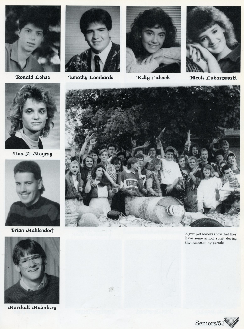 1990 Sheboygan South High School Yearbook Page 53: Ronald Lohse, Timothy Lombardo, Kelly Lubach, Nicole Lukaszewski, Tina A. Magray, Brian Mahlendorf, Marshall Malmberg.