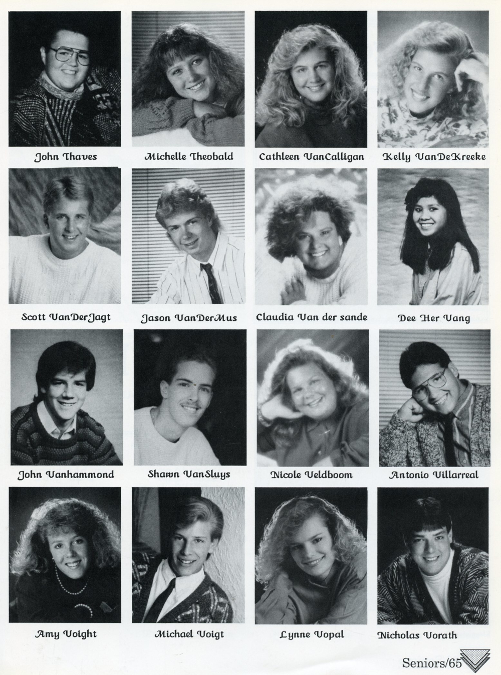 65: John Thaves, Michelle Theobald, Cathleen VanCalligan, Kelly Van De Kreeke, Scott Van Der Jagt, Jason Van Der Mus, Claudia Van Der Sande,