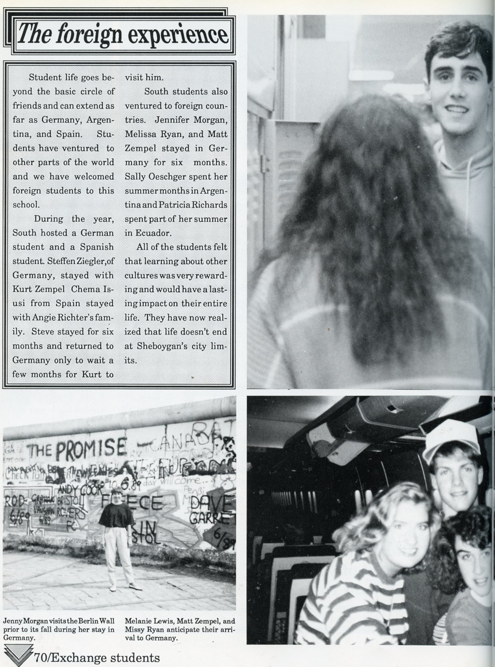 1990 Sheboygan South High School Yearbook Page 70: The foreign experience, Steffen Ziegler, Chema Isusi.