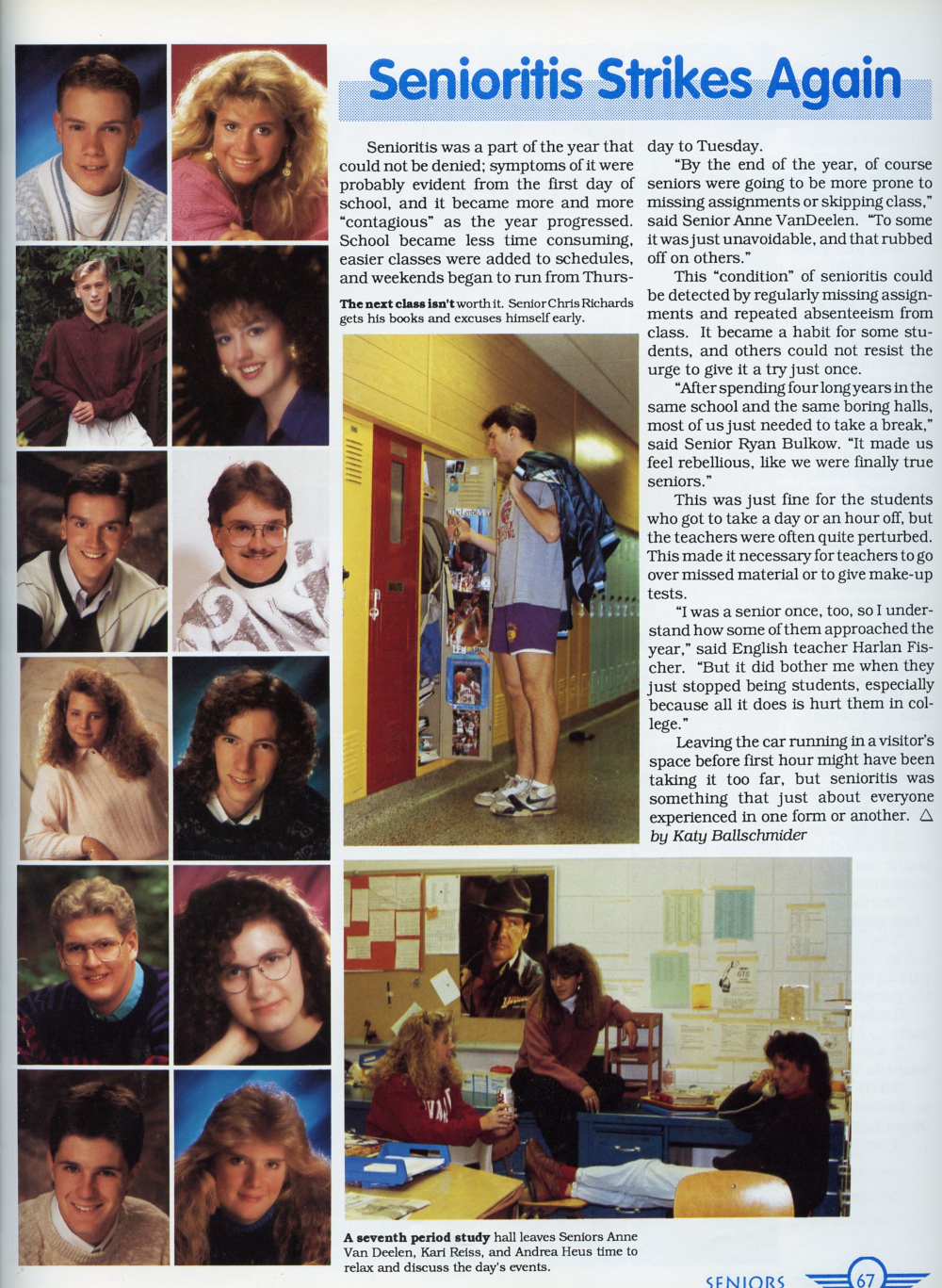 1991 Sheboygan North High School Yearbook Page 67: Ryan Bulkow, Deborah Burchinal, Jason Chapman, Jennifer Charles, Timothy Cosgrove, Winston Cox, Patti Dergantz, Timothy DeTroye, Robert Dorsey, Kristyn Ertl, Robert Fetterer, Erica Fink.