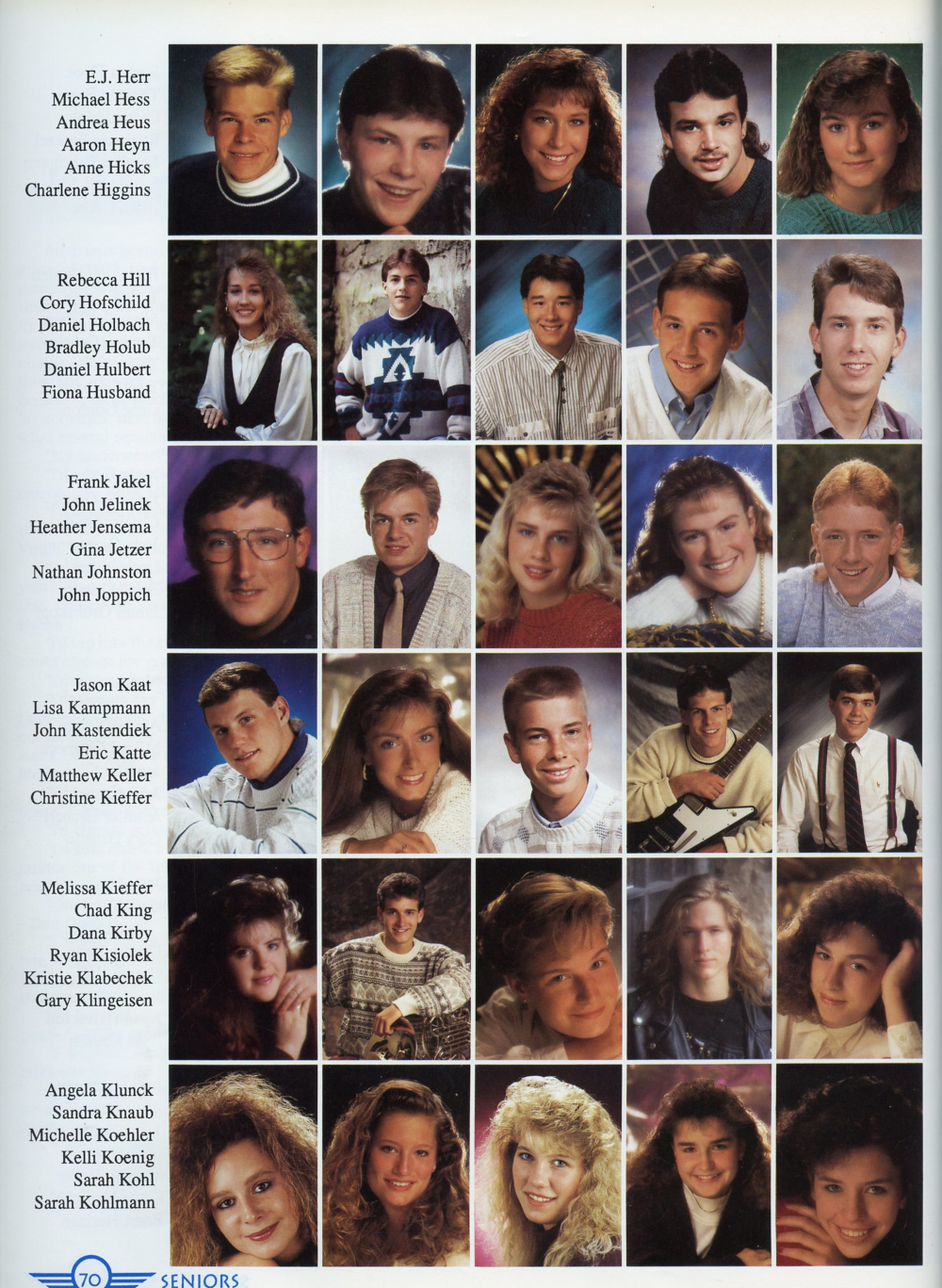 70: E. J. Herr, Michael Hess, Andrea Heus, Aaron Heyn, Anne Hicks, Rebecca Hill, Cory Hofschild, Daniel Holbach, Bradley Holub,