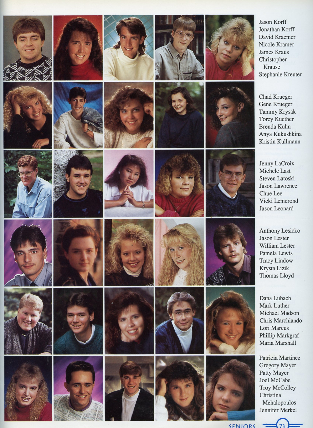 73: David Kraemer, Nicole Kramer, James Kraus, Christopher Krause, Stephanie Kreuter, Tammy Krysak, Torey Kuether, Brenda Kuhn,
