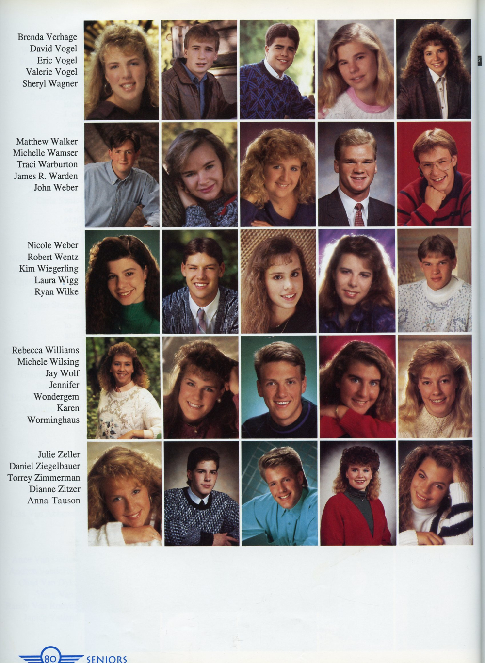 80: Brenda Verhage, David Vogel, Eric Vogel, Valerie Vogel, Sheryl Wagner, Matthew Walker, Michelle Wamser, Traci Warburton, James R. Warden,