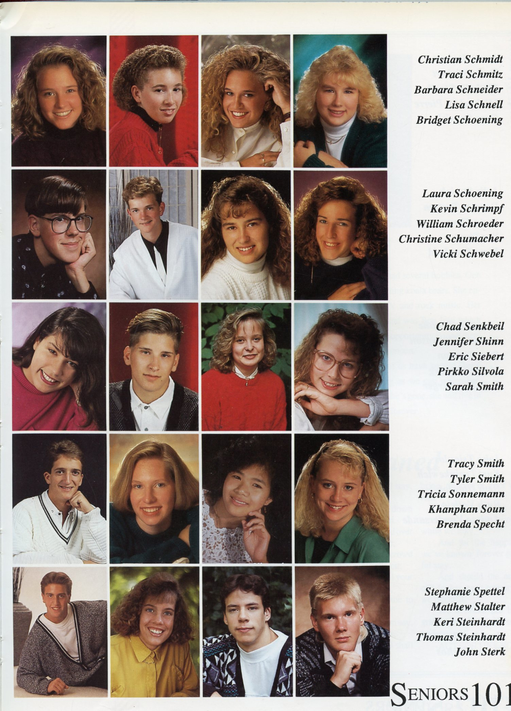 101: Traci Schmitz, Barbara Schneider, Lisa Schnell, Bridget Schoening, Kevin Schrimpf, William Schroeder, Christine Schumacher,