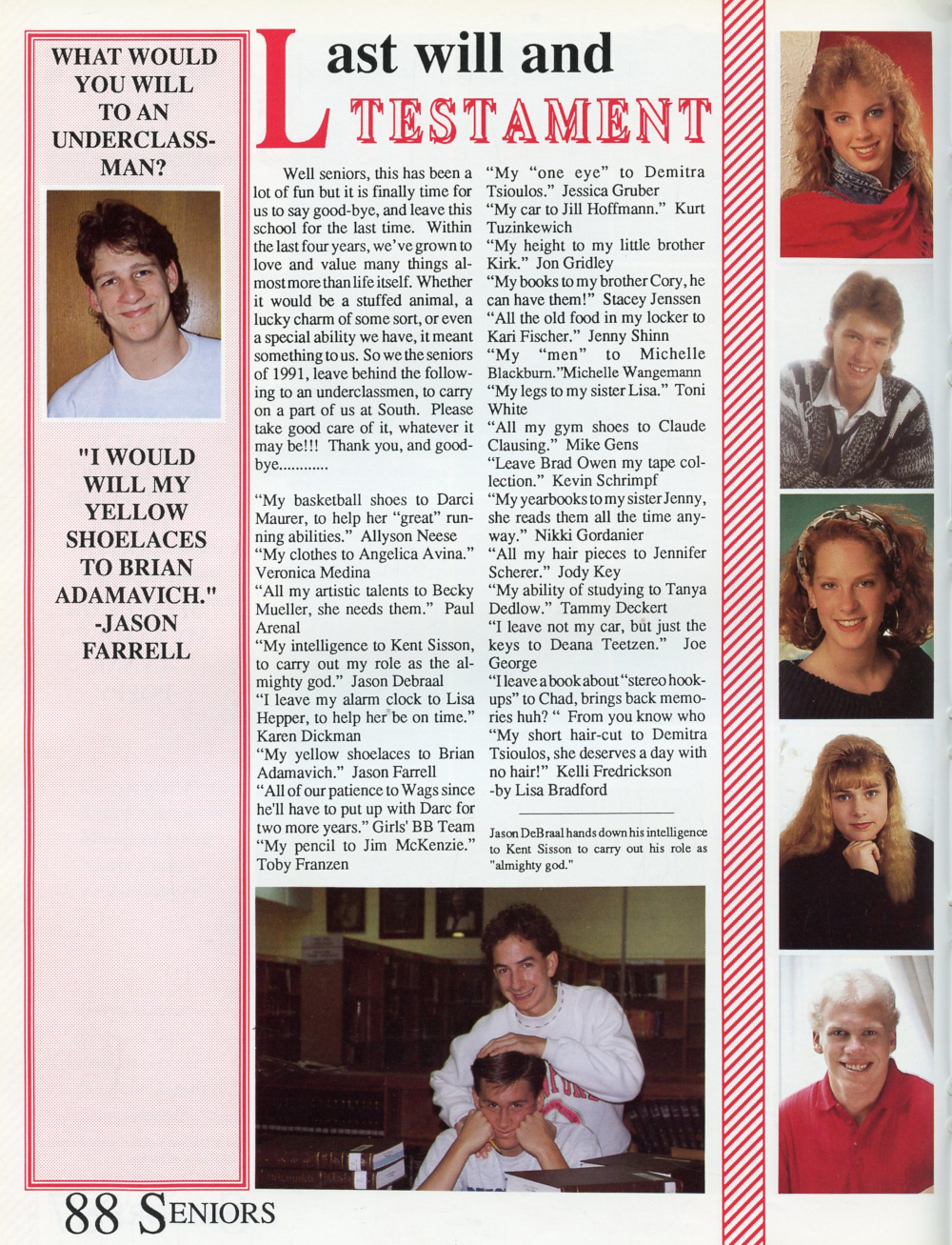 1991 Sheboygan South High School Yearbook Page 88: Kristin Gmach, Daniel Green, Jessica Gruber, Jodi Gustafson, John Hanson.