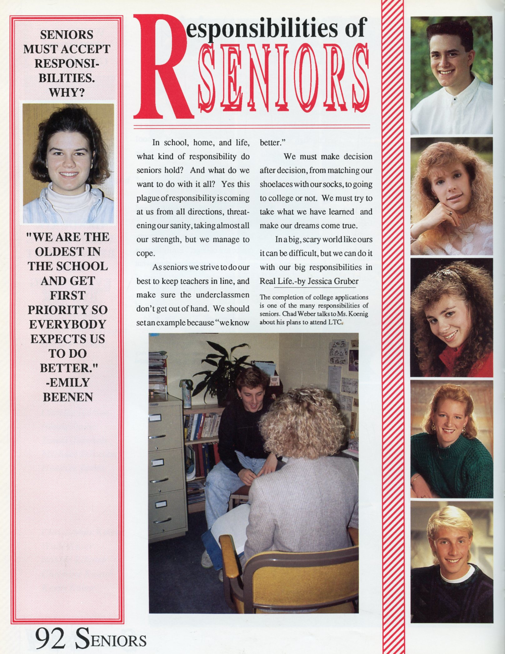 1991 Sheboygan South High School Yearbook Page 92: Jeffrey Kohlbeck, Heather Krolow, Michelle Lallemont, Tamara Leannah, Andrew Likas.