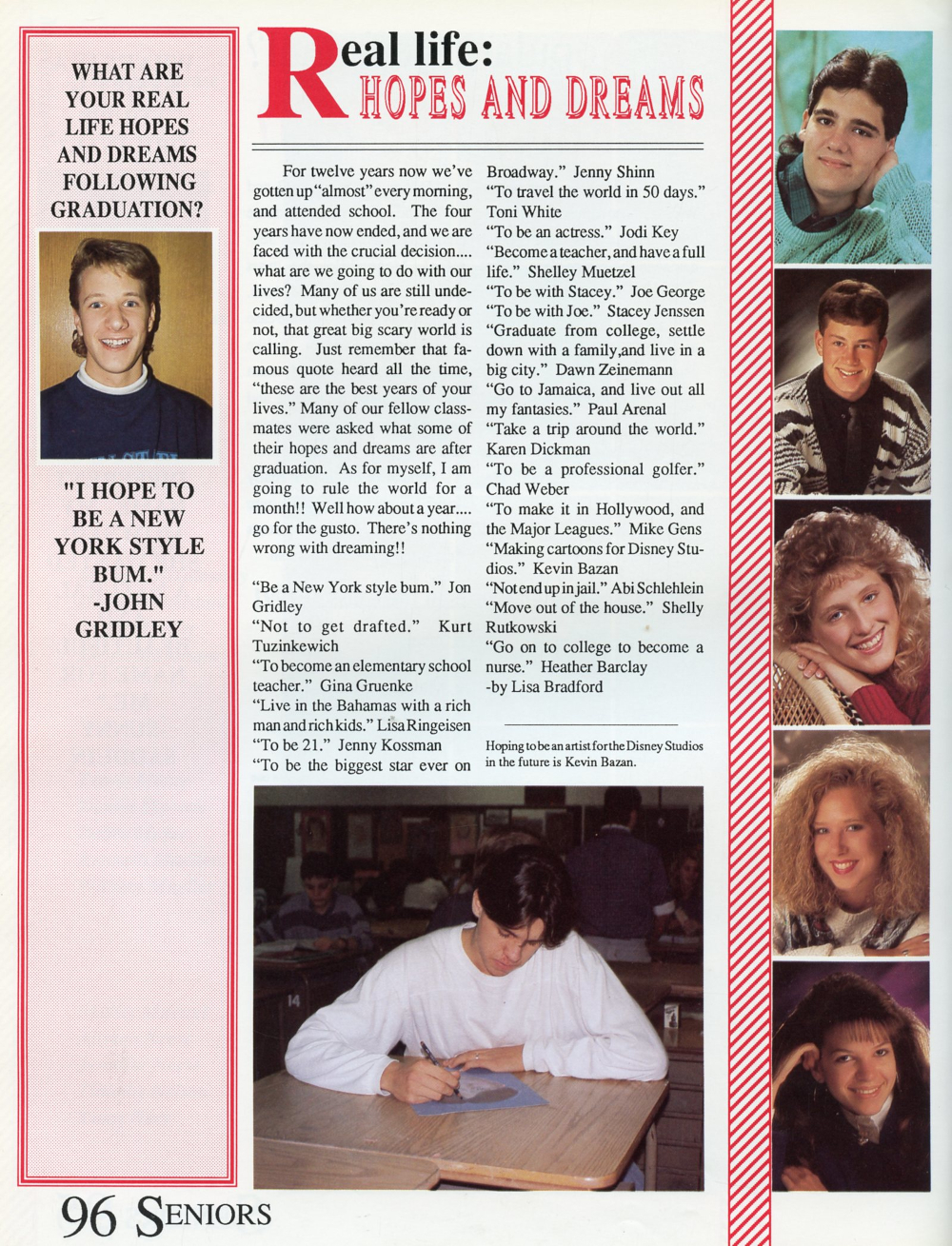 1991 Sheboygan South High School Yearbook Page 96: Bradley Ognacevic, Curtiss Pakkebier, Amy Pfister, Lynn Poppy, Brenda Rahe.