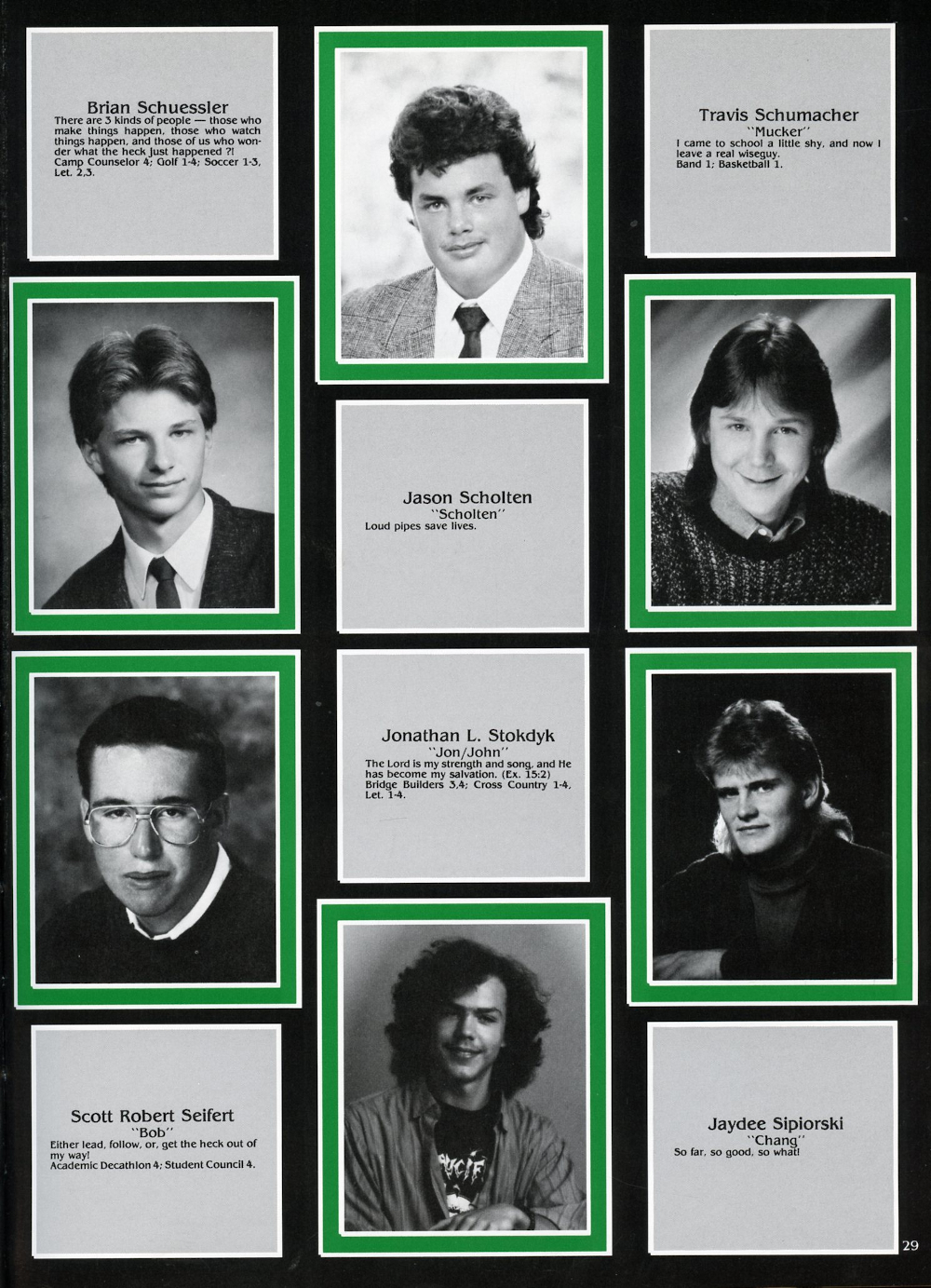 1992 Oostburg High School Page 29: Jason Scholten, Brian Schuessler, Travis Schumacher, Scott Robert Seifert, Jaydee Sipiorski, Jonathan L. Stokdyk.