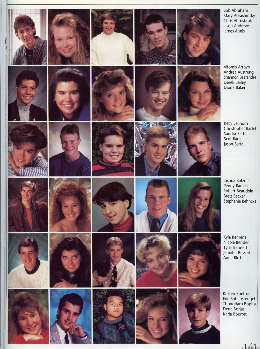 141: Bob Abraham, Mary Abrashinsky, Chris Ahrnsbrak, Jason Andrews, James Annis, Alfonso Arroyo, Andrea Austreng, Shannon Baarendse,