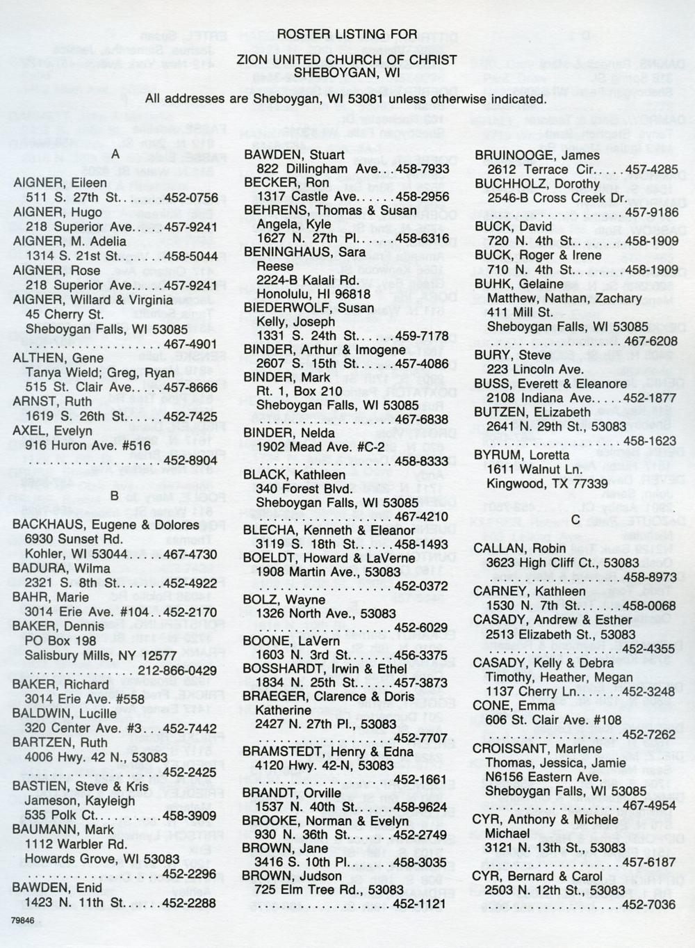 1992 Zion United Church of Christ Directory, Page 27: 1992 Zion United Church of Christ Directory Roster Listing Aigner to Cyr.